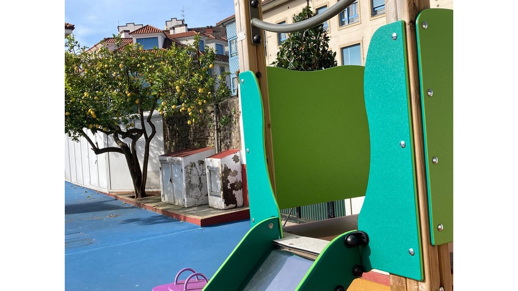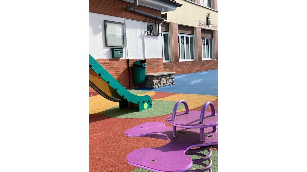 - Amplio patio de recreo con zona a techo, juegos (twister, cascayu, circuito de chapas) y parque infantil para los más pequeños